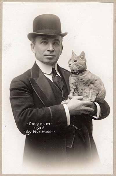 This 1911 photograph shows Kiddo, the first cat to attempt to cross the Atlantic by airship, and Melvin Vaniman, engineer of the airship America. Kiddo was the subject of the first ever wireless radio message sent from an aircraft. The Goodyear Tire & Rubber Co. is donating the lifeboat used on two early attempted crossings of the Atlantic by airship to the Smithsonian’s National Air and Space Museum. The earliest attempt was made by the airship America in 1910, and the first wireless message from a powered aircraft was sent from the radio position in the lifeboat. The second attempt was the flight of the Akron, the first Goodyear airship, in 1912. The lifeboat is 27 feet long with a 6-foot beam and is constructed of three thicknesses of mahogany veneer.